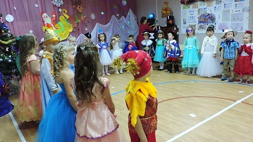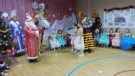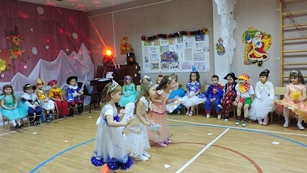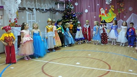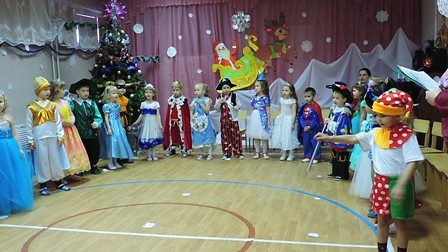 Утренник в старшей группе прошел по мотивам сказки "Золушка". Веселые скоморохи открыли представление. Золушке, как всегда, пришлось прибираться дома и ухаживать за своими сёстрами, которые вместе с мачехой решили отправиться на бал. На балу танцевали придворные,звучал оркестр, Король и Принц принимали гостей.Золушка уже отчаялась , как вдруг дети позвали нашу новогоднюю волшебницу -Снегурочку, она принарядила Золушку и отправила ее на бал. На балу она встретила прекрасного принца,но увы сказке суждено было закончиться ровно в 12 часов. Золушка так спешила,что обронила свою туфельку. Принц приказал мушкетерам найти Золушку. Мушкетеров решили обмануть сестрички, что одна из них Золушка, им даже пришлось станцевать танец, что бы им поверили,но отважные мушкетеры сразу поняли ,что это не Золушка. В конце представления пришел волшебник Дед Мороз ,мушкетеры вернули Золушку Принцу и все получили свои новогодние подарки.